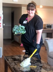 Tara prides herself on keeping things clean and presentable. And she appreciates when the kids and other Ranch staff notice. "People are always telling me I'm doing a good job. Even the kiddos. When I clean their bathrooms, they thank me. Or when I spray air freshener, they're like, 'Oh, and you're making it smell really good.'"